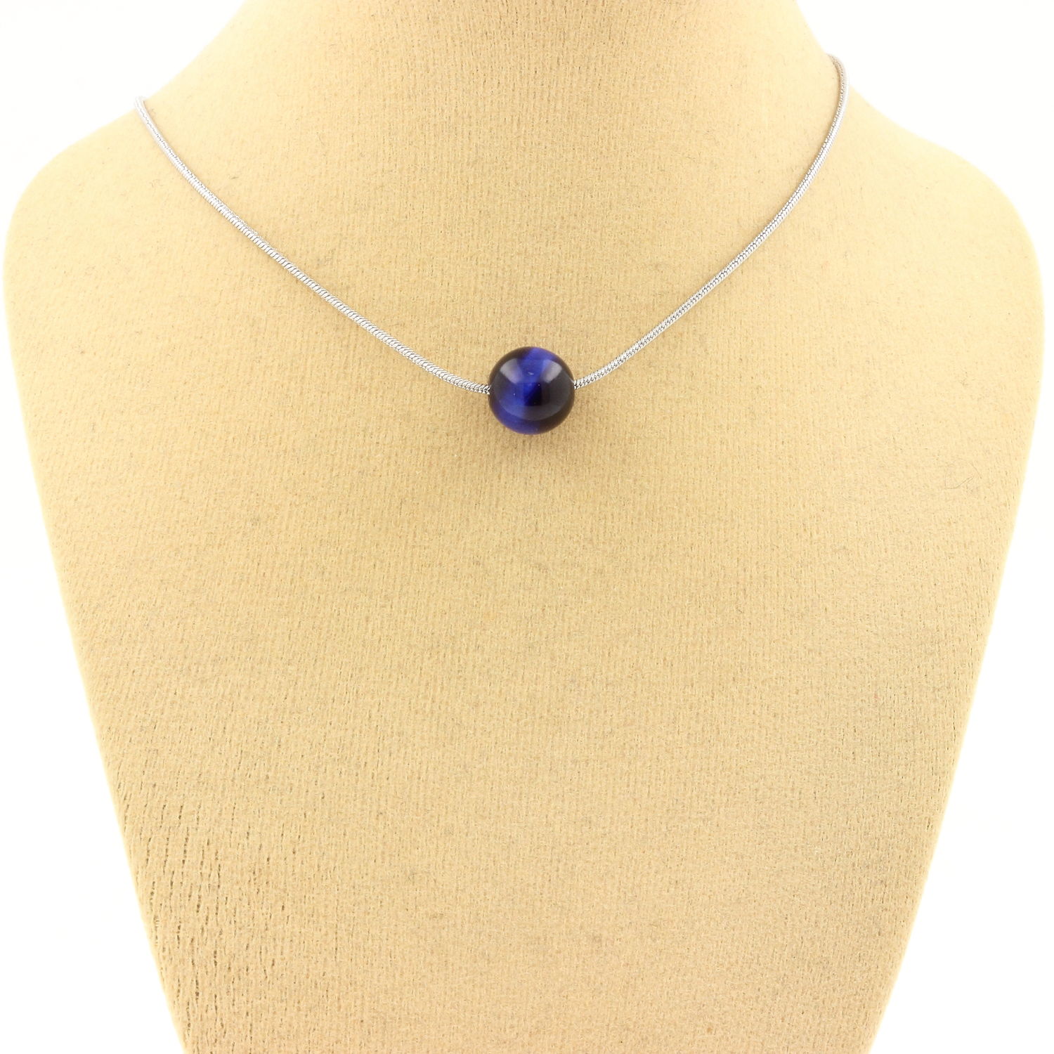 1 blue Tiger Eye 8 mm necklace, stainless steel chain length 45 cm. We can make it to your length on request. Made in France in our A Bijoux workshop. Delivered in a box pouch. Necklace for women, men, children. Discover more than 1000 models of necklaces made by the A Bijoux brand with new arrivals every day.