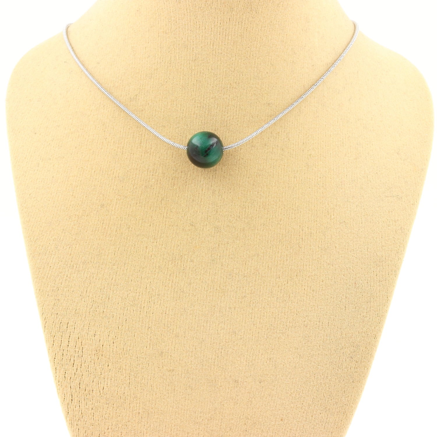 1 green Tiger Eye 8 mm necklace, stainless steel chain length 45 cm. We can make it to your length on request. Made in France in our A Bijoux workshop. Delivered in a box pouch. Necklace for women, men, children. Discover more than 1000 models of necklaces made by the A Bijoux brand with new arrivals every day.