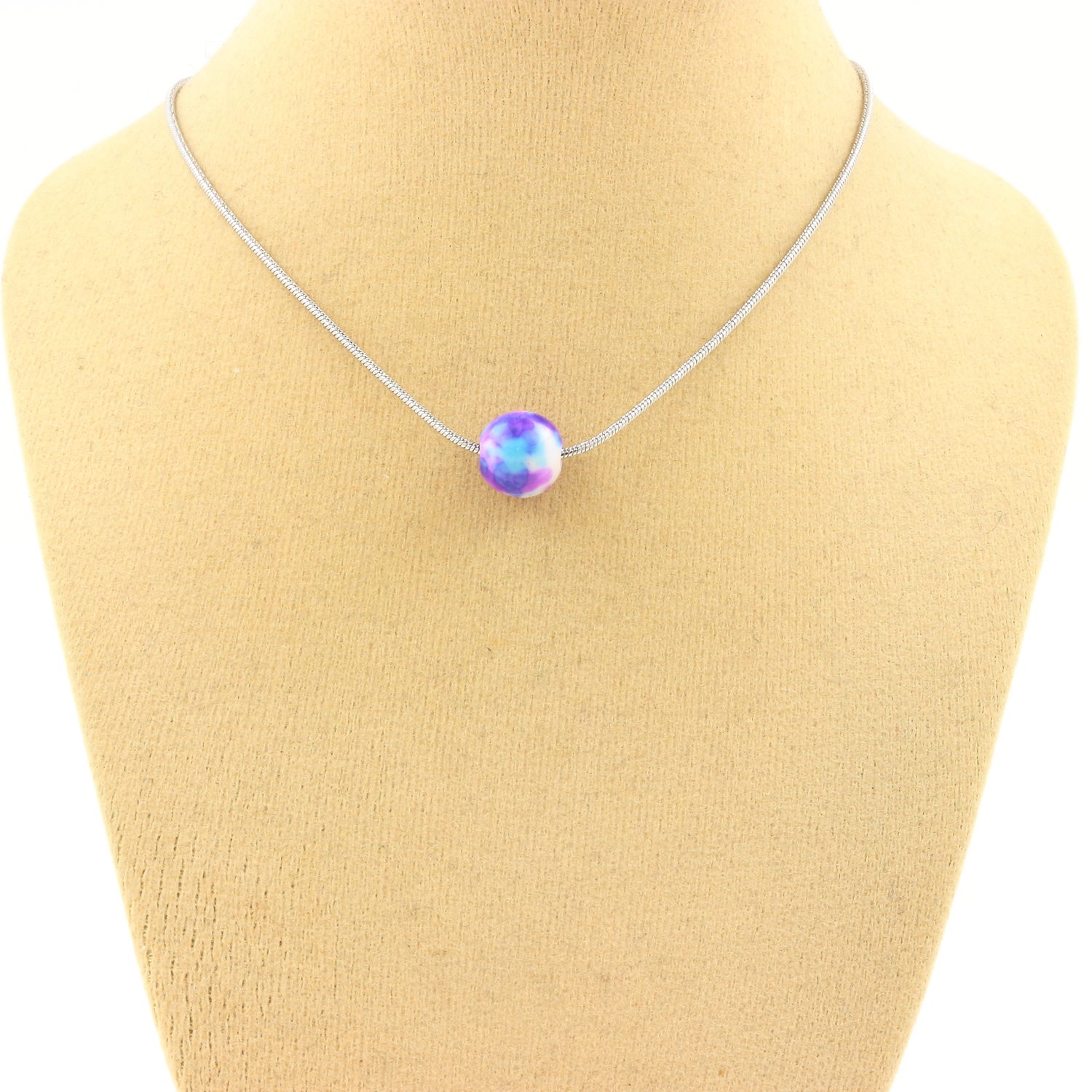 1 purple blue Jasper bead 8 mm necklace Stainless steel chain