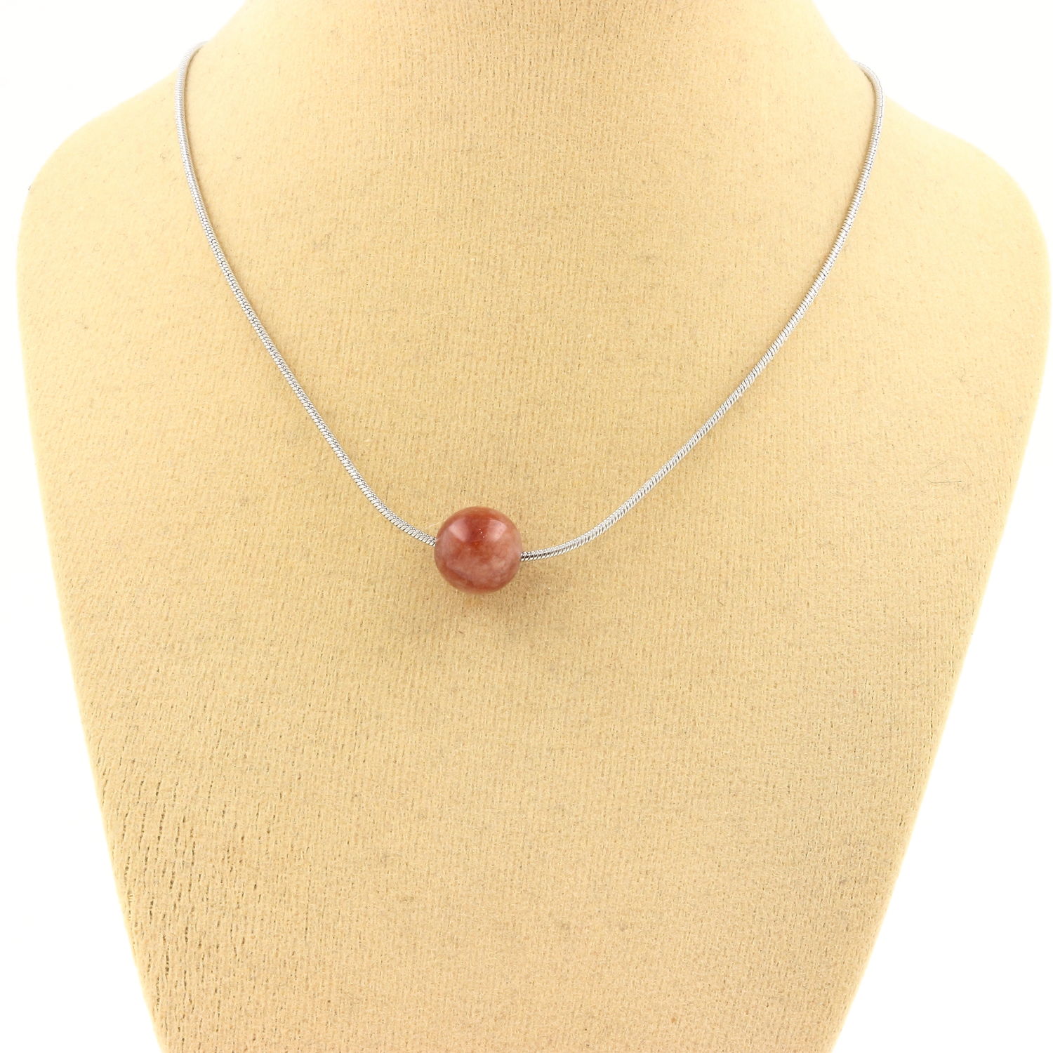 1 Sunstone bead 8 mm necklace Stainless steel chain