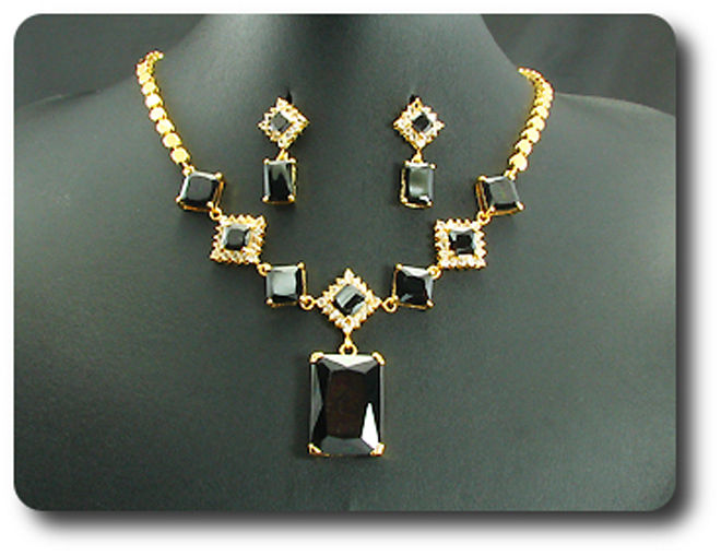 12x28~8mm Black Sapphire Necklace Earrings Set