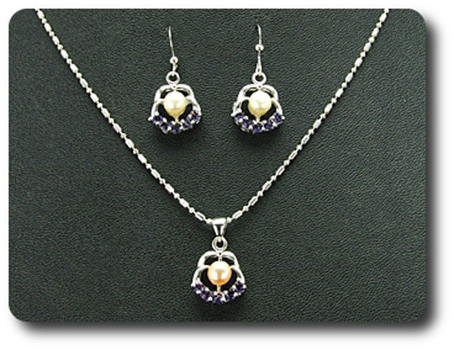 15x3mm Purple Amethyst & Pearl Pendant Earrings Set