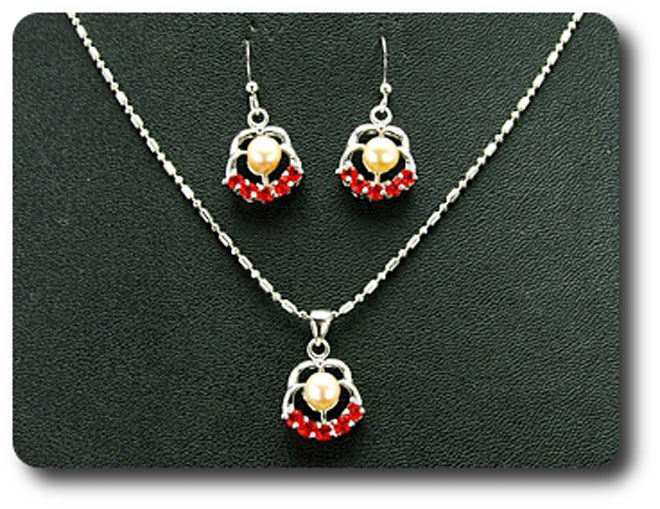 15x3mm Red Ruby & Pearl Pendant Earrings Set