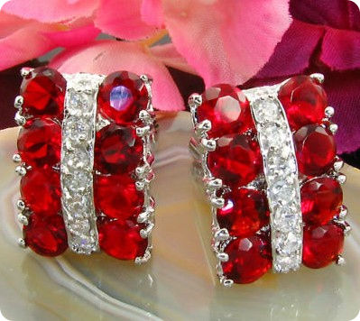 16x5 mm Red Ruby White Gold Plated 18 K Cufflinks
