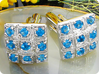 18x4 mm Blue Sapphire White Gold Plated 18 K Cufflinks