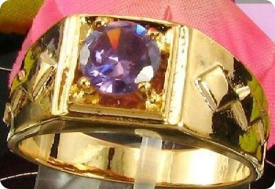 1x6mm Purple Amethyst Round Cut Gold Ring
