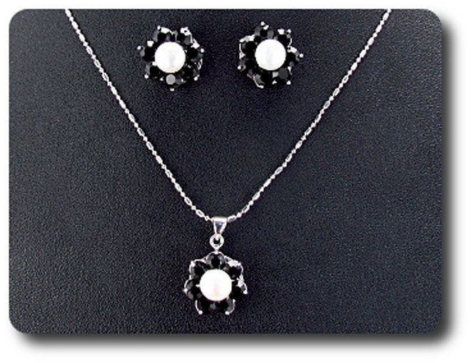 21x5mm Black Sapphire & Pearl Pendant Earrings Set