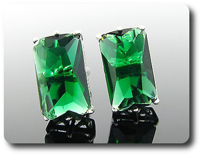 2x20mm Simulated Green Emerald Cufflink