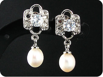 2x8mm White Fresh Water Pearl Oval Cut Earrings