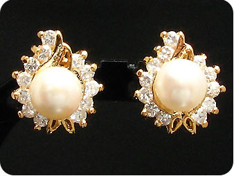 2x8mm White Fresh Water Pearl Round Cut Gold Earrings