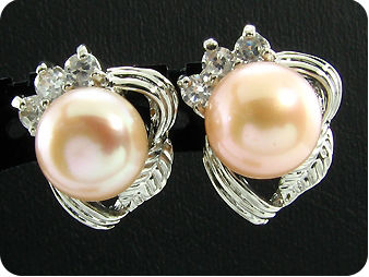 2x9mm Creamy Fresh Water Pearl White Topaz Earrings