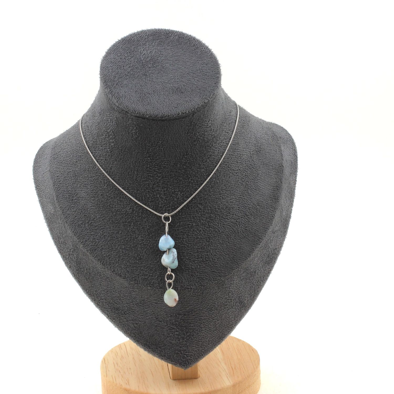 3 Freeform Dominican Republic Larimar Beads 5mm-8mm necklace, stainless steel chain length 45 cm. We can make it to your length on request. Made in France in our A Bijoux workshop. Delivered in a box pouch. Necklace for women, men, children. Discover more than 2000 models of necklaces made by A Bijoux.