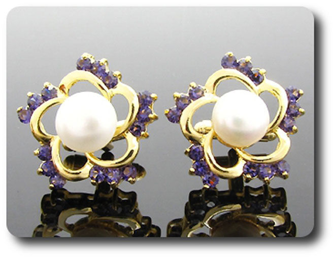 30x3 mm Purple Amethyst & White Pearl Cufflink for women