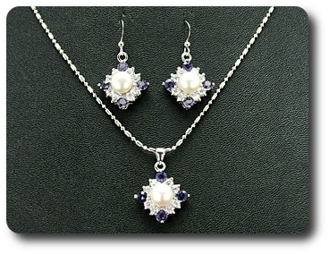 36x3mm Purple Amethyst & Pearl Pendant Earrings Set