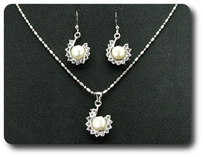 36x3mm White Topaz & Pearl Pendant Earrings Set
