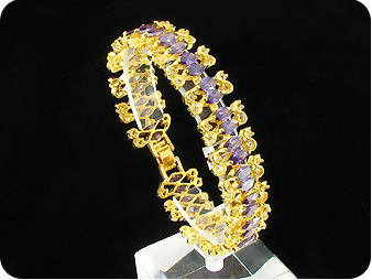 38x6mm Purple Colour Amethyst Marquise Gold Bracelet