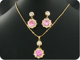 3x12mm Pink Sapphire Pendant Earrings Set