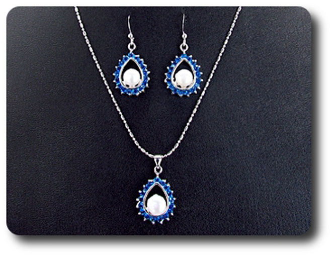 41x3mm Blue Sapphire & Pearl Pendant Earrings Set