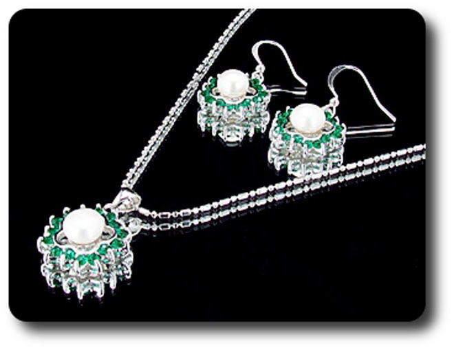 45x3mm Green Emerald & Pearl Pendant Earrings Set