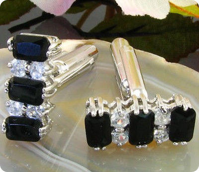 6x6 mm Black Sapphire White Gold Plated 18 K Cufflinks