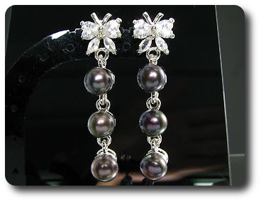 6x6mm Black Fresh Water Pearl White Topaz Earrings