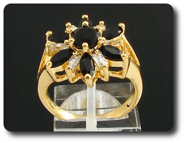 7 x 6mm Black Sapphires Round Cut Gold Ring