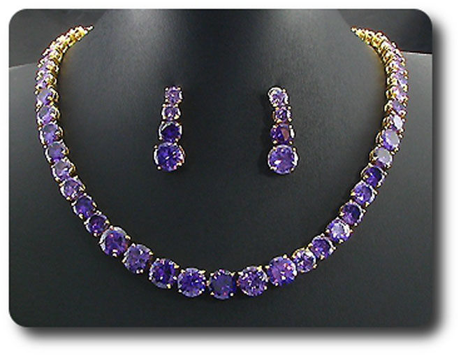 70x10~6mm Purple Amethyst Necklace Earrings Set