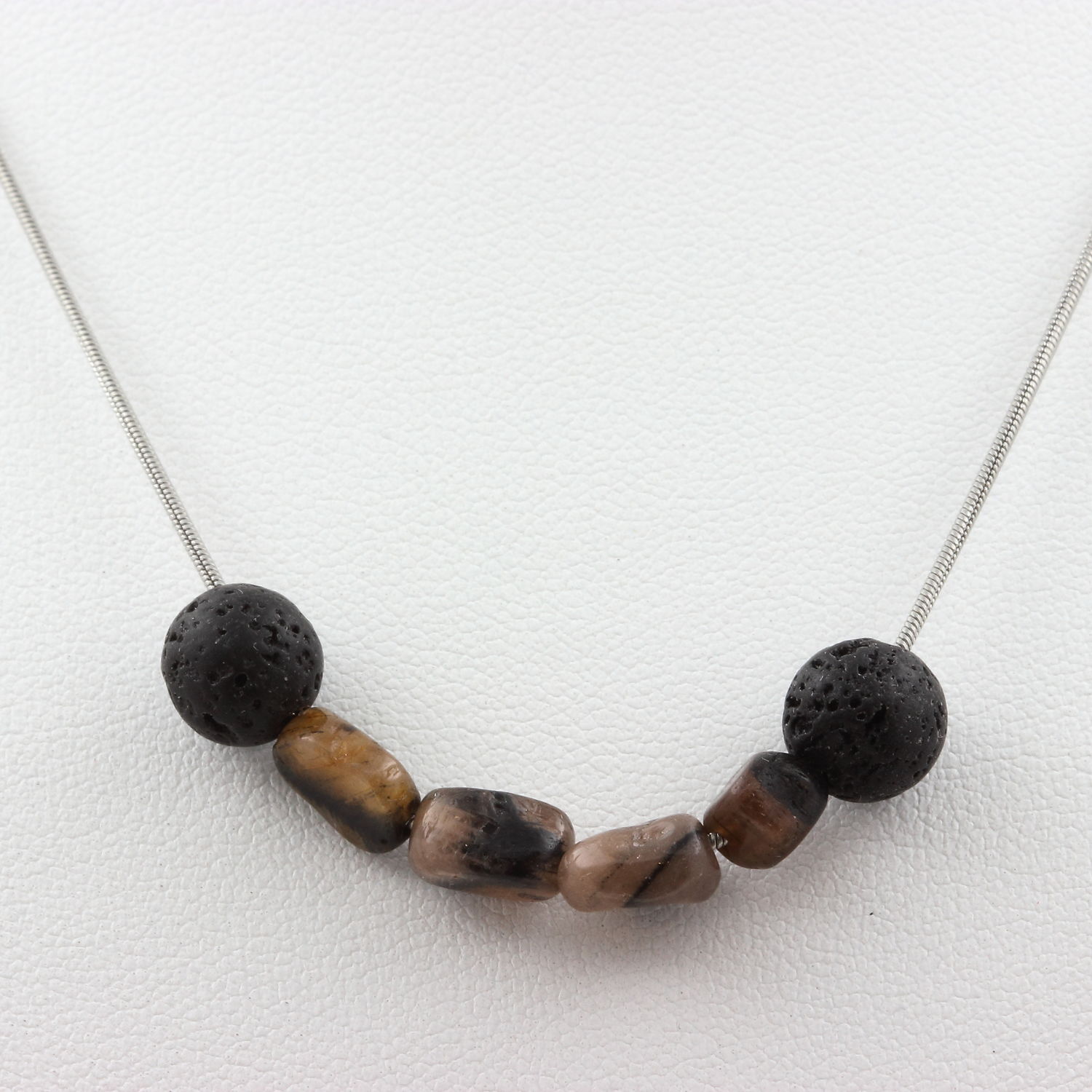 Pietersite from USA + Lava 8 mm beaded necklace Stainless steel chain