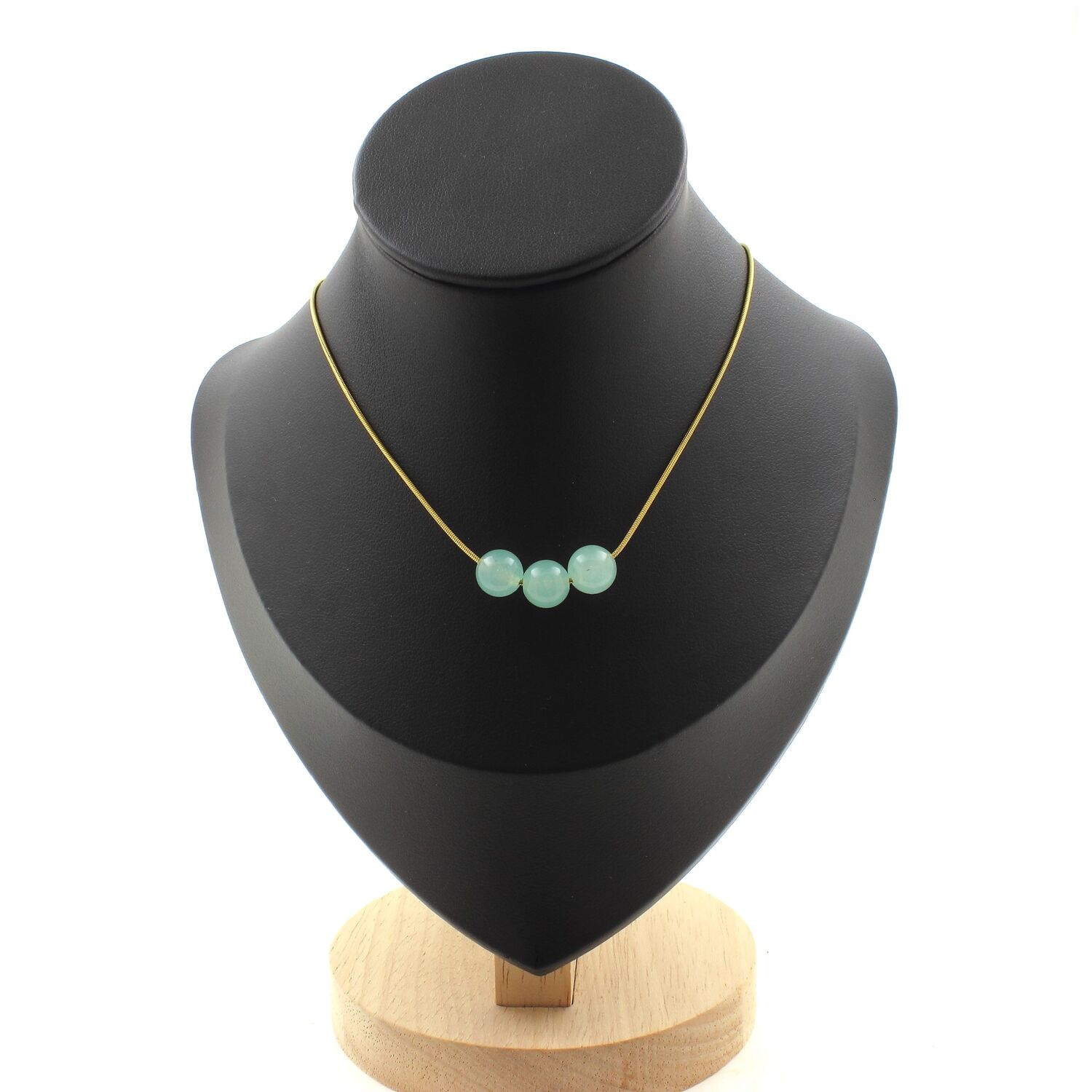 Angelite 3 beads 8 mm necklace, golden stainless steel chain length 45 cm. We can make it to your length on request. Made in France in our A Bijoux workshop. Delivered in a box pouch. Necklace for women, men, children.