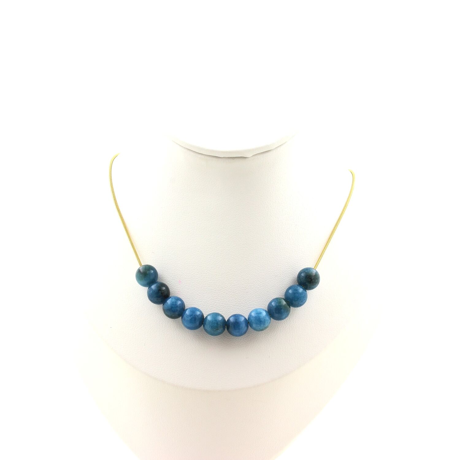 Apatite 10 beads 8 mm necklace. Golden stainless steel chain