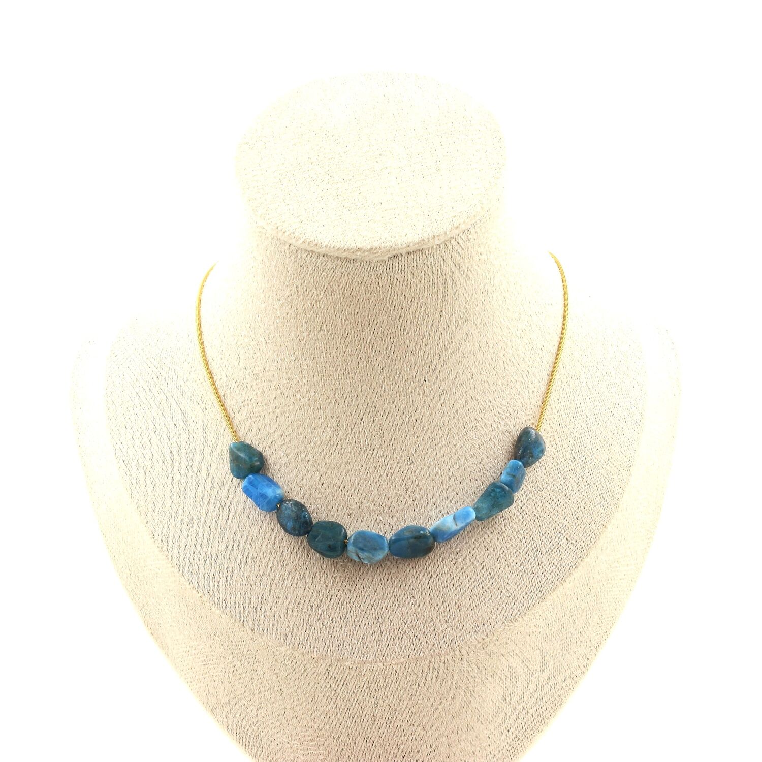 Apatite from Brazil 10 beads necklace, golden stainless steel chain length 45 cm. We can make it to your length on request . Made in France in our A Bijoux workshop. Delivered in a box pouch. Necklace for women, men, children. Discover more than 1000 models of necklaces made by the A Bijoux brand with new arrivals every day.
