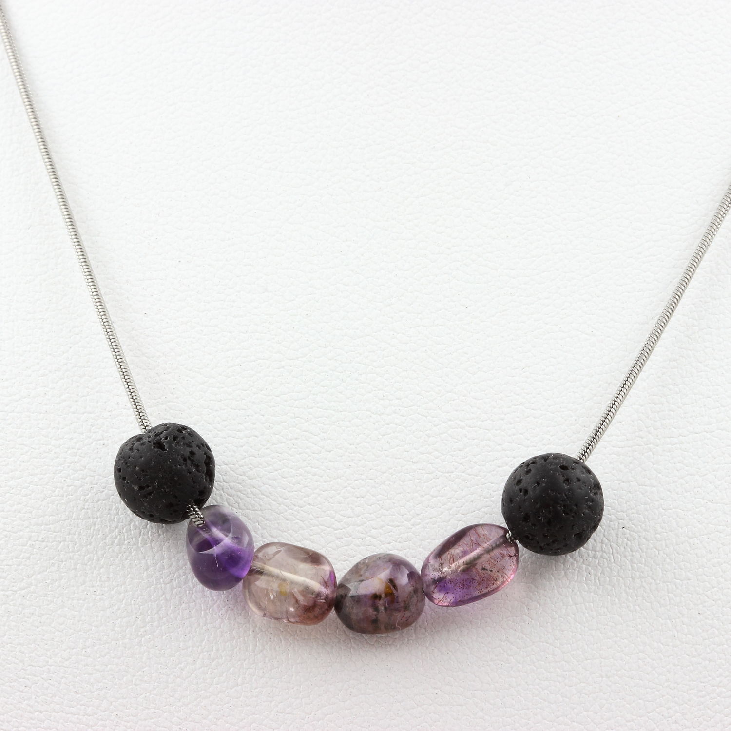 Auralite from Canada + Lava 8 mm beaded necklace Stainless steel chain