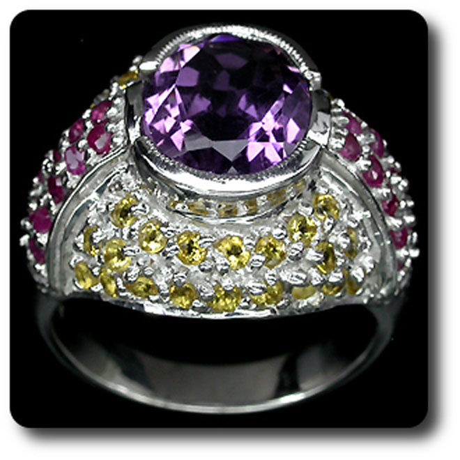 BAGUE AMETHYSTE CITRINE & RUBIS