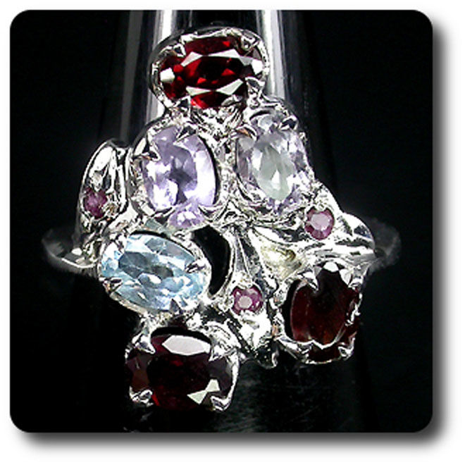 BAGUE AMETHYSTE GRENAT TOPAZE RUBIS
