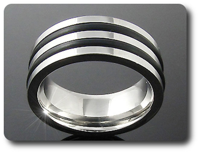 BAGUE HOMME DOUBLE LIGNE NOIRE