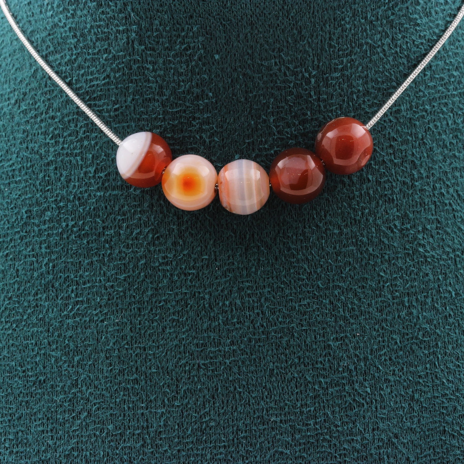 Banded Agate 5 beads necklace 8 mm. Stainless steel chain