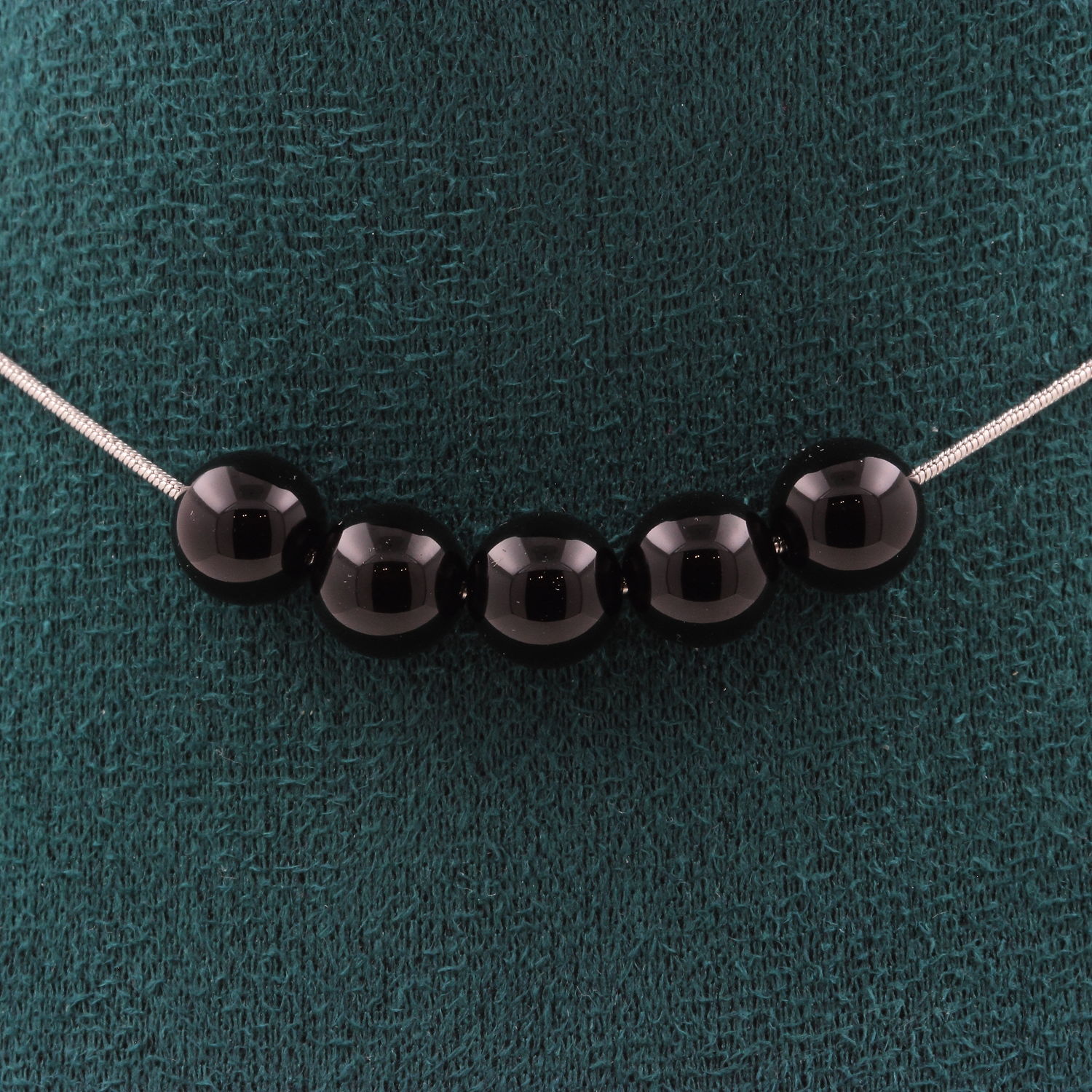 Black Agate 5 beads 8 mm necklace, stainless steel chain length 45 cm. We can make it to your length on request. Made in France in our A Bijoux workshop. Delivered in a box pouch. Necklace for women, men, children. Discover more than 1000 models of necklaces made by the A Bijoux brand with new arrivals every day.