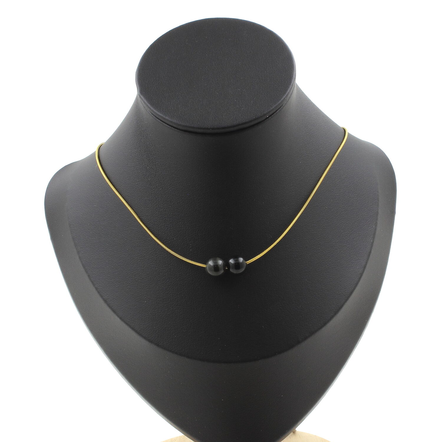 Black obsidian 8 mm 2 beads necklace, golden stainless steel chain length 45 cm. We can make it to your length on request. Made in France in our A Bijoux workshop. Delivered in a box pouch. Necklace for women, men, children. Discover more than 1000 models of necklaces made by the A Bijoux brand with new arrivals every day.