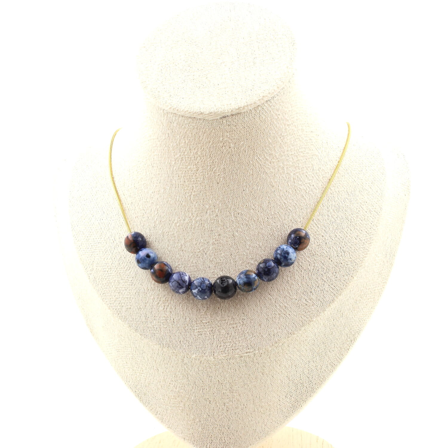 Blue jasper 8 mm 10 beads necklace, golden stainless steel chain length 45 cm. We can make it to your length on request . Made in France in our A Bijoux workshop. Delivered in a box pouch. Necklace for women, men, children. Discover more than 1000 models of necklaces made by the A Bijoux brand with new arrivals every day.