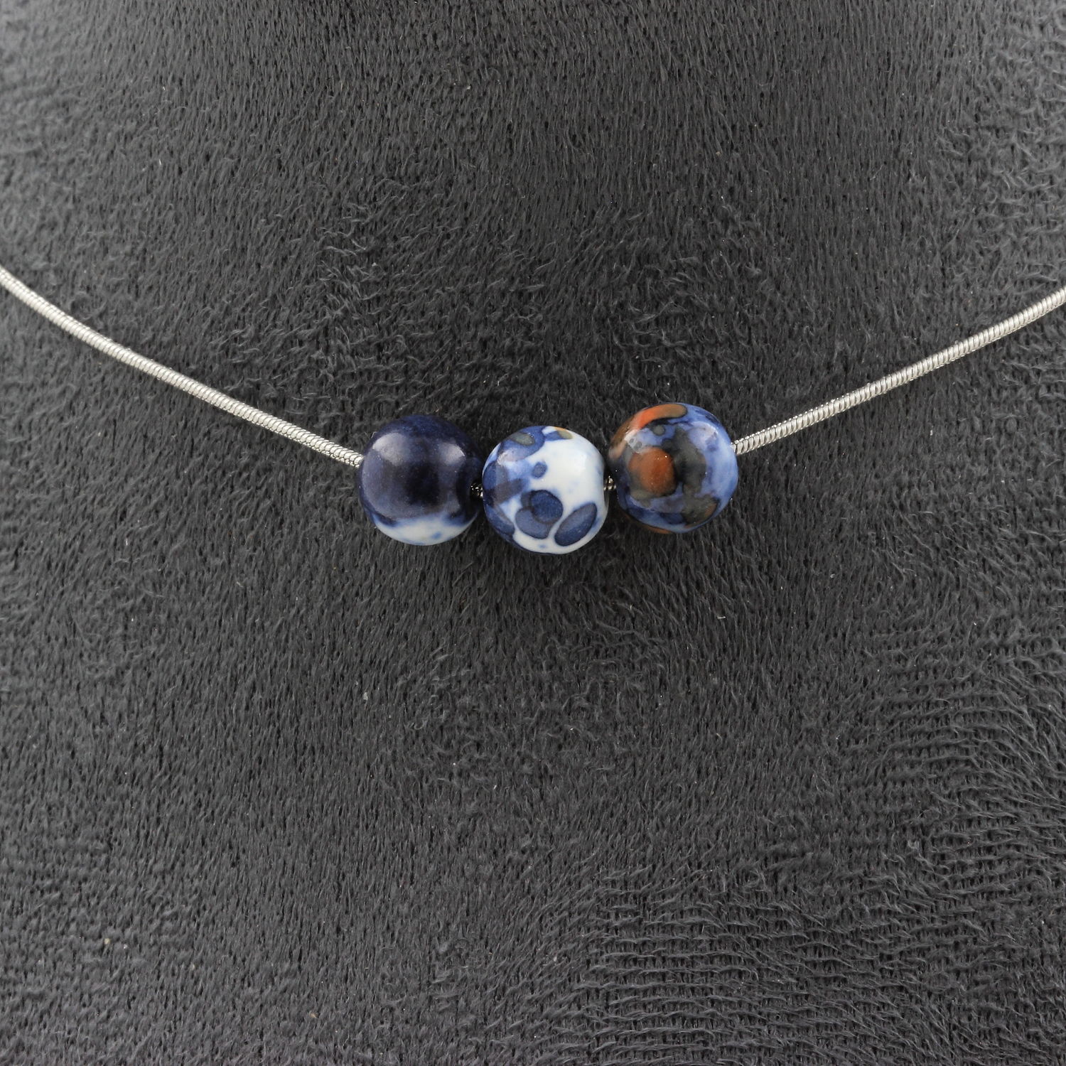 Blue jasper 8 mm 3 beads necklace. Stainless steel chain
