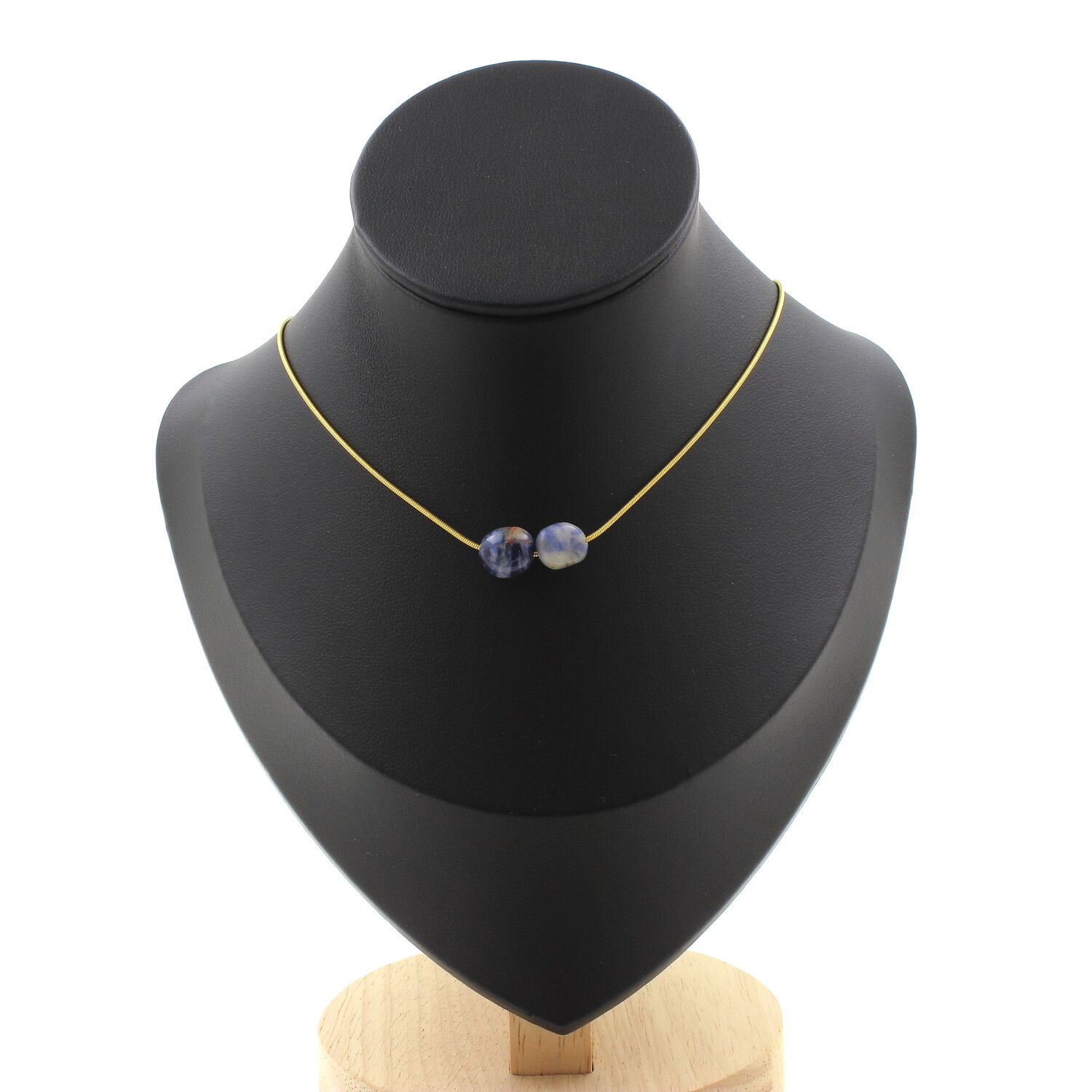 Blue jasper from South Africa 2 beads necklace. Golden stainless steel chain