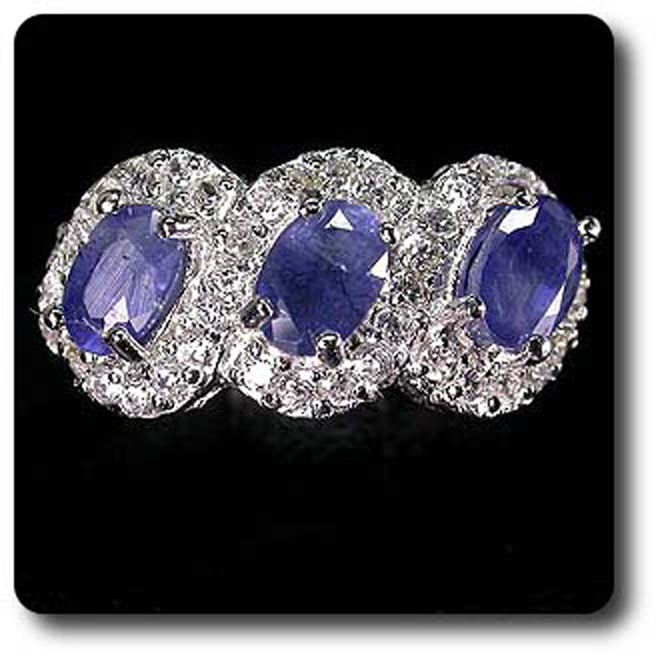 Gemstones Natural Sapphire 6x4 mm , origin Africa & White cubic zirconia 1 mm