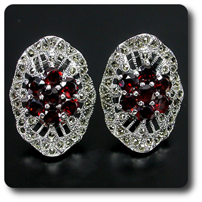BOUCLES D'OREILLE GRENAT & MARCASSITE