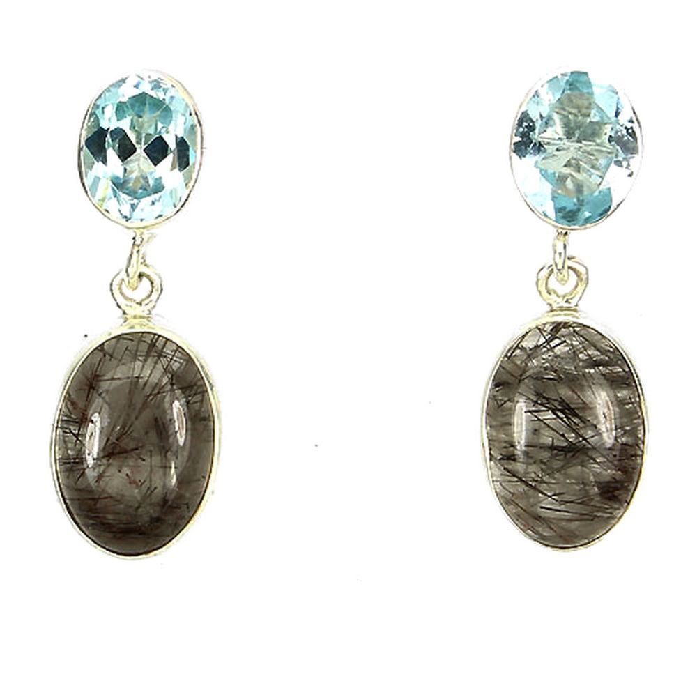Boucles d'oreille Quartz rutile et Topaze bleu