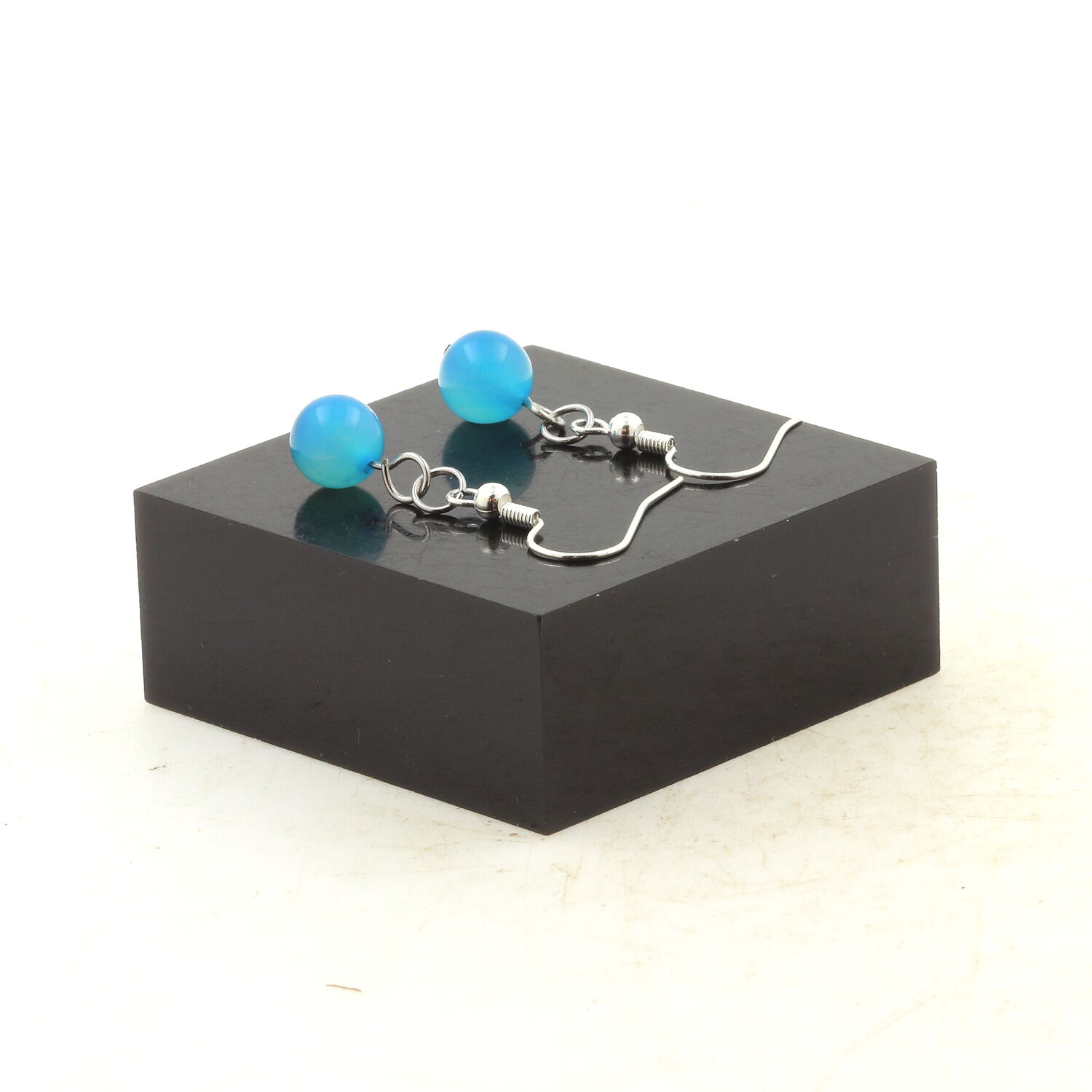 Boucles D'oreilles en acier inoxydable hypoallergénique 1 Perle Agate rubanée bleu 8 mm.