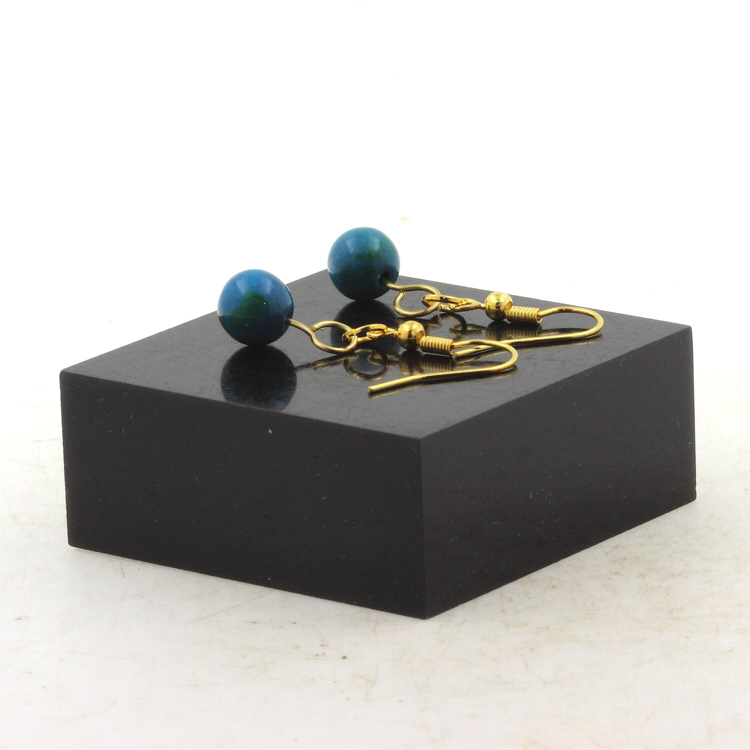Boucles D'oreilles en acier doré inoxydable hypoallergénique 1 Perle Chrysocolle Teintée 8 mm.
