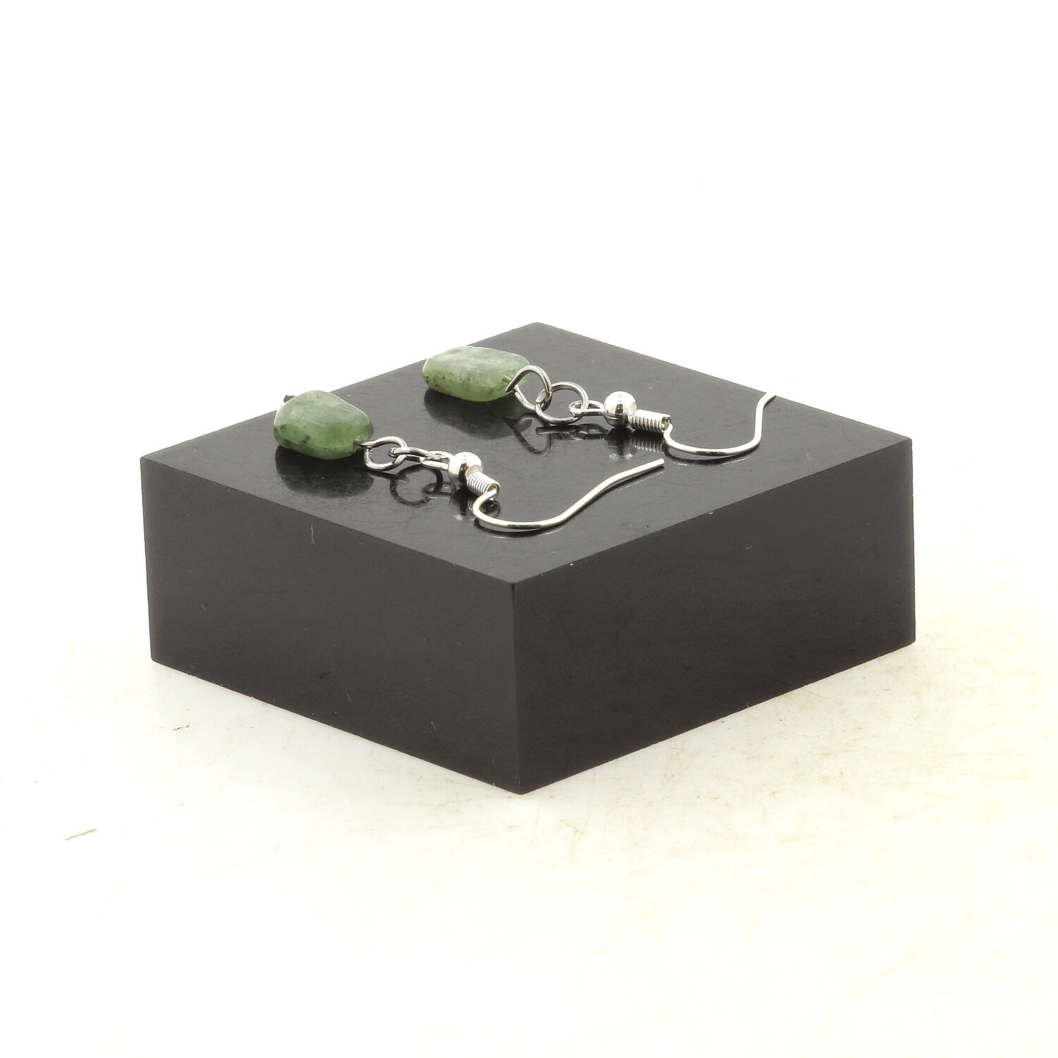 Boucles D'oreilles en acier inoxydable hypoallergénique 1 Perle Cyanite verte du Brésil de forme libre 5 mm-8 mm.