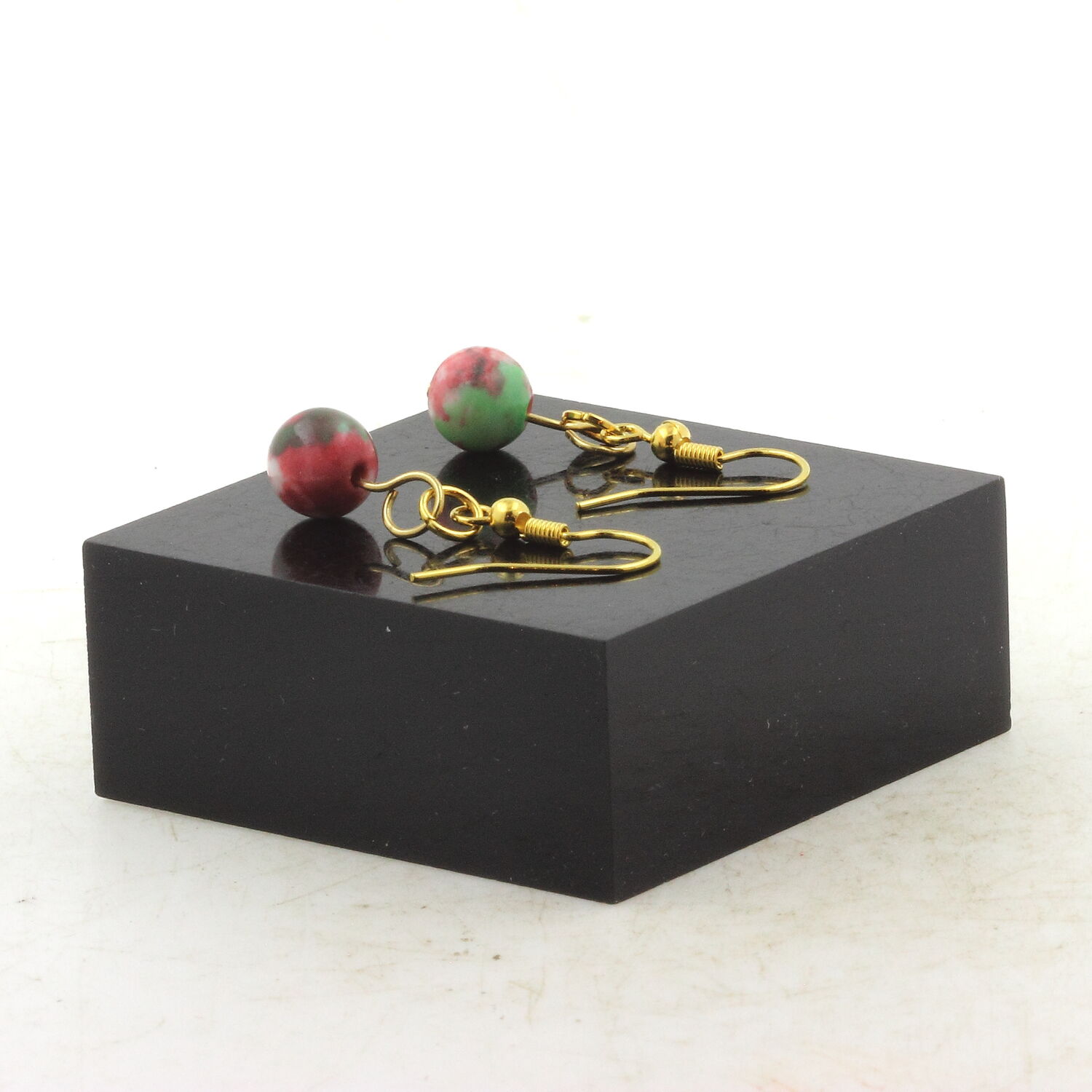 Boucles D'oreilles en acier doré inoxydable hypoallergénique 1 Perle Jaspe vert rouge 8 mm.