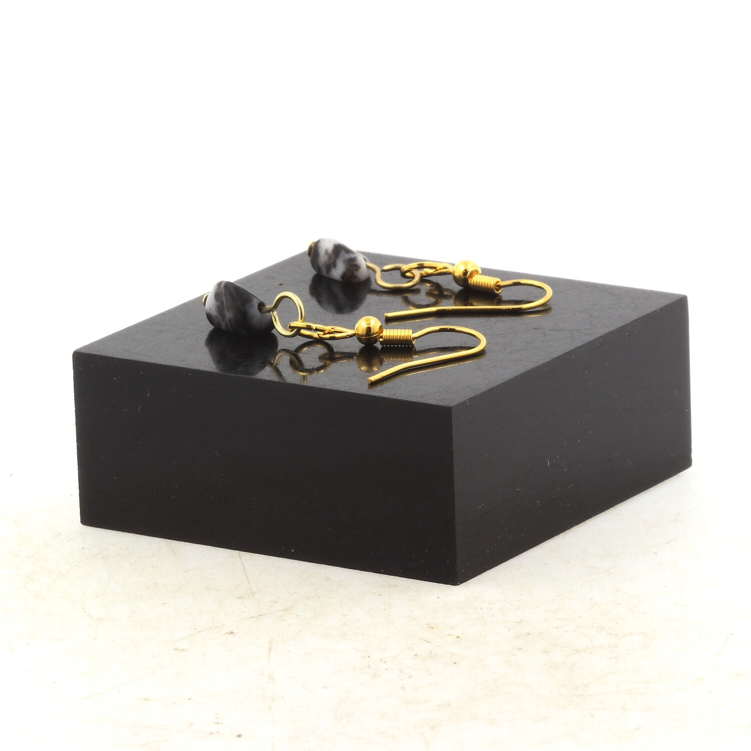 Boucles D'oreilles 1 Perle Jaspe zèbre du Brésil en acier doré inoxydable.