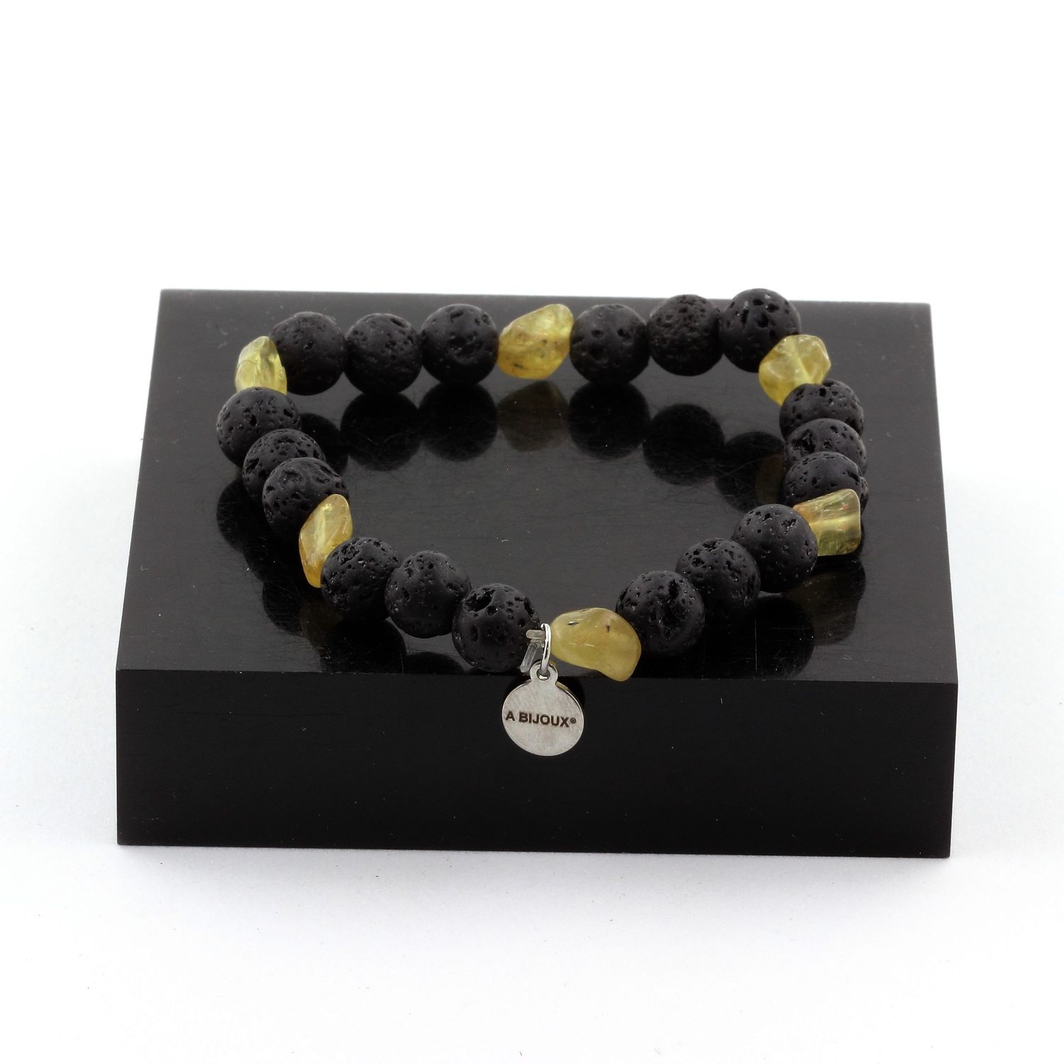 Bracelet Apatite jaune de Madagascar + Perles Lave de 8 mm.